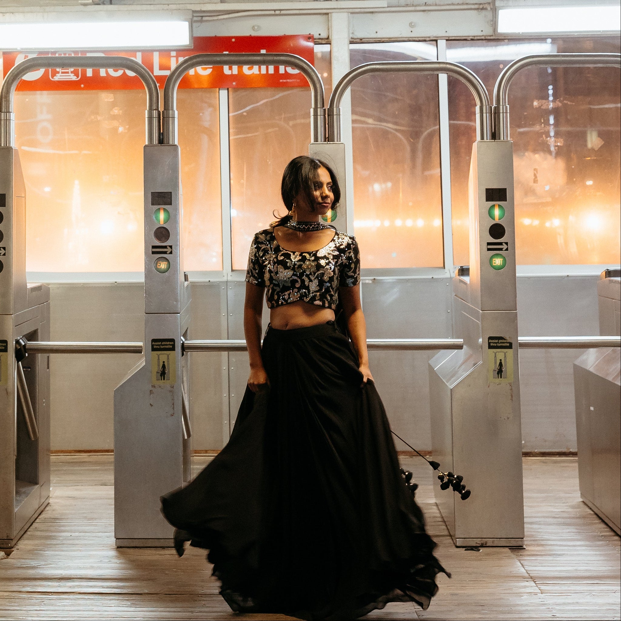 This elegant black ensemble features intricate sequin embellishments that catch the light beautifully, complemented by a pre-pleated dupatta for effortless draping. Designed with sophisticated versatility in mind, it transitions seamlessly from formal dinners to upscale evening gatherings, offering a polished look that commands attention without requiring additional styling effort.